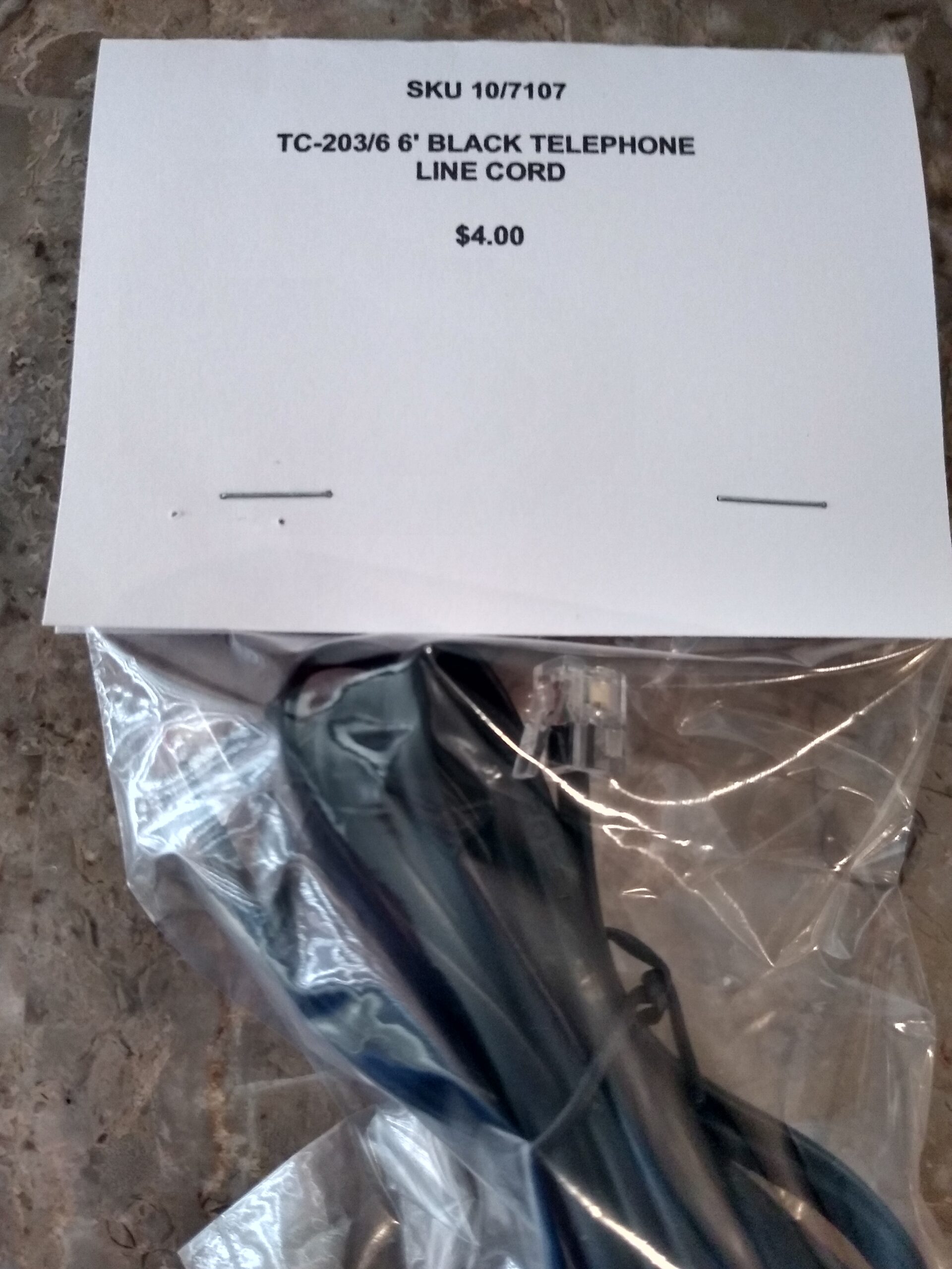6′ Black Telephone Line Cord $3.99